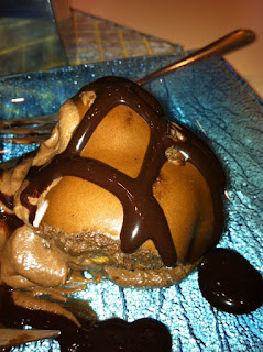 This little gem here is called a kugel, which means ball in German. But this is no ordinary ball. It is basically a cream puff with chocolate mousse and chocolate sauce on the outside of it. We leave Monday. They're open tomorrow. I'm going back one more time to get one of these in white chocolate.
